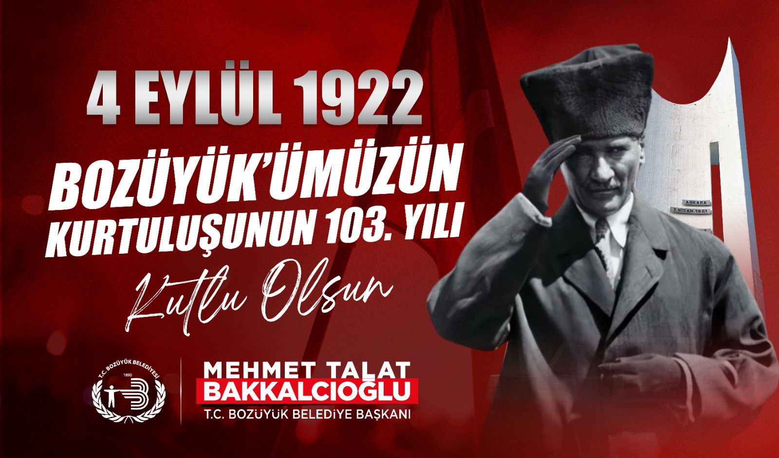 Bozüyük Belediye Başkanı Mehmet Talat Bakkalcıoğlu, Bozüyük’ün düşman işgalinden kurtuluşunun yıl dönümü nedeniyle bir kutlama mesajı yayınladı.
