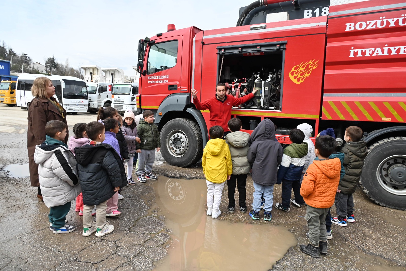 Bozüyük Belediyesi İtfaiye Müdürlüğü ekiplerince Bozüyük Hoca Ahmet Yesevi İlkokulu ana sınıfı öğrencilerine temel yangın eğitimi verildi.