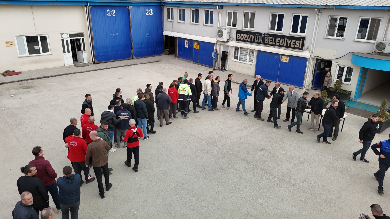 Bozüyük Belediyesi Fen İşleri ve İtfaiye Garajı’nda yapılan bayramlaşma törenine, Belediye Başkanı Mehmet Talat Bakkalcıoğlu, Belediye-İş Eskişehir Şube Başkanı Kemal Azak ve sendika temsilcileri, belediye başkan yardımcıları ve belediye personeli katıldı. Tören ile ilgili olarak bilgi veren Başkan Bakkalcıoğlu “Ramazan Bayramı öncesinde, kıymetli çalışma arkadaşlarımızla bir araya gelerek hem bayramlaştık hem de belediyemiz işçileri ile Personel Anonim Şirketi işçilerini kapsayan toplu iş sözleşmemizin imza törenini gerçekleştirdik. Karşılıklı anlayış, diyalog ve ortak akıl çerçevesinde yürütülen bu sürece katkı sunan, başta Belediye-İş Eskişehir Şube Başkanı Kemal Azak olmak üzere, sendika temsilcilerine ve tüm çalışanlarımıza teşekkür ediyorum. Çalışanlarımızın haklarını gözeten, emeklerinin karşılığını en iyi şekilde alabilmelerine imkân tanıyan ve sosyal kazanımlarını güçlendiren bir nitelikte hazırlanan, 3 yıl geçerli olacak toplu iş sözleşmesinin belediyemize ve tüm emekçilerimize hayırlı olmasını diliyorum. Kentimiz için emek veren tüm mesai arkadaşlarıma teşekkür ediyor, herkesin sevdikleriyle birlikte sağlıklı, mutlu ve huzurlu bir bayram geçirmesini temenni ediyorum.” dedi.