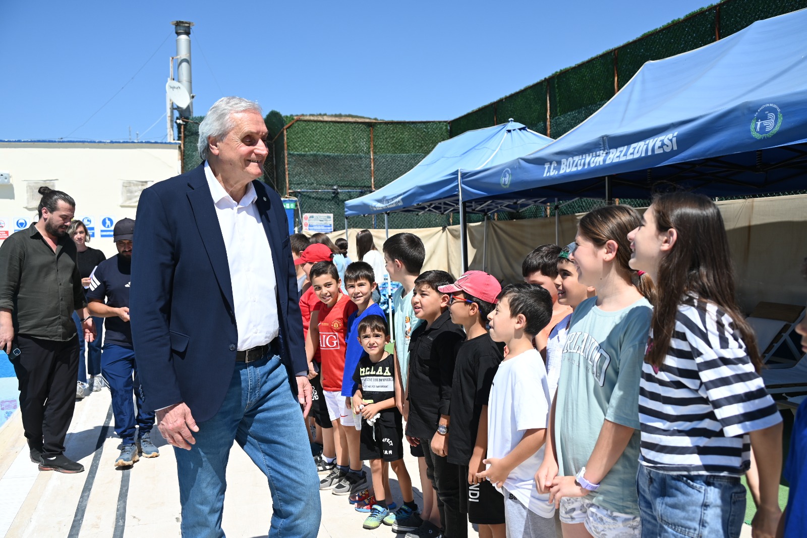 Bu yıl 6 spor branşında ücretsiz olarak düzenlenen Bozüyük Belediyesi Yaz Spor Okulları branşları arasında yer alan yüzme kursunu Belediye Başkan Yardımcısı Vedat Kazıcı ile birlikte ziyaret eden Bozüyük Belediye Başkanı Mehmet Talat Bakkalcıoğlu öğrenciler ve veliler ile bir araya geldi. Kursu başarıyla bitiren öğrencilere Katılım Belgelerini takdim eden Başkan Bakkalcıoğlu öğrencileri tek tek tebrik ederek başarılarının devamını diledi. Belge törenine katılan öğrenci velilerini de selamlayan Başkan Bakkalcıoğlu velilerle görüşerek sohbet etti.